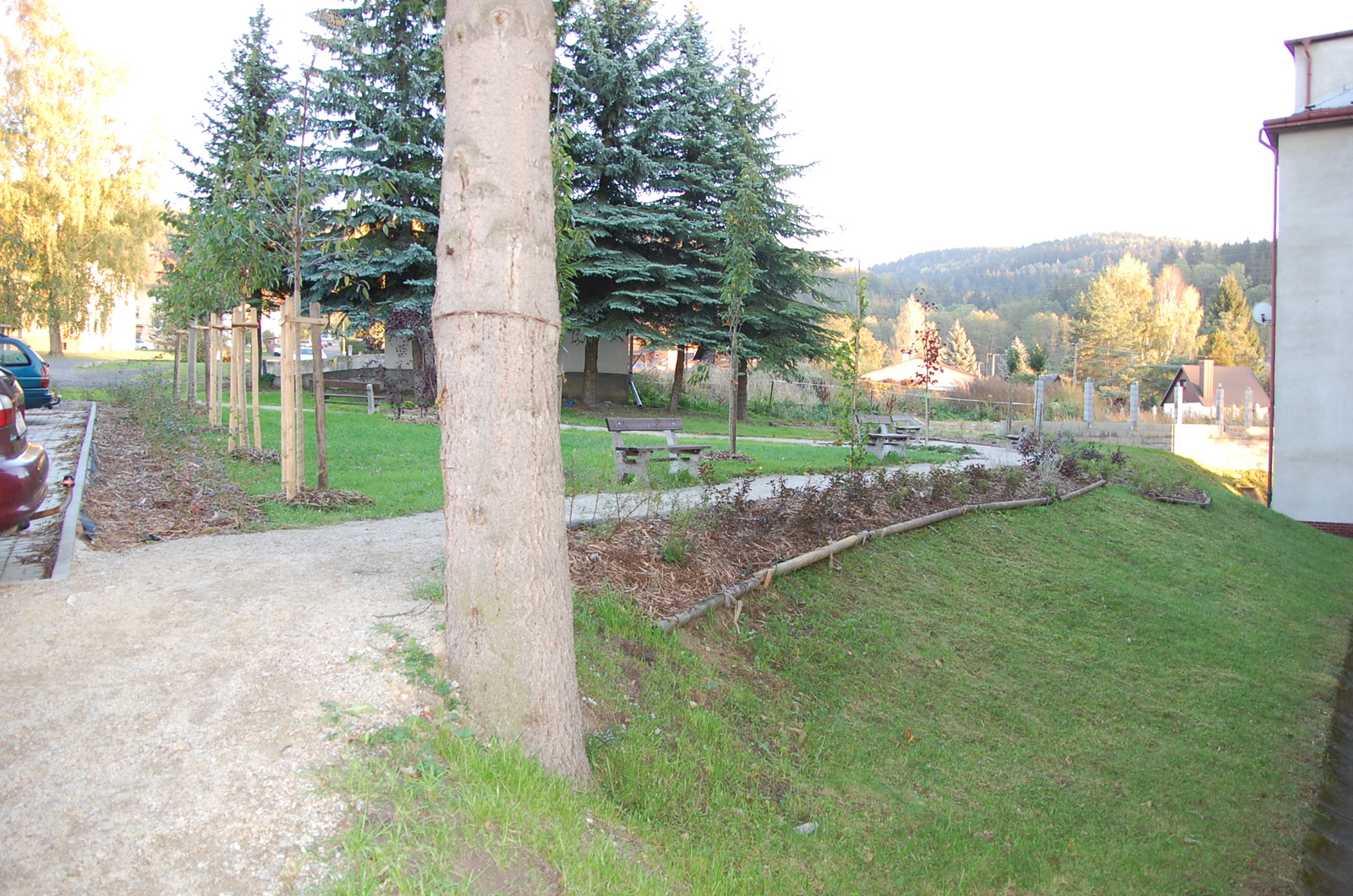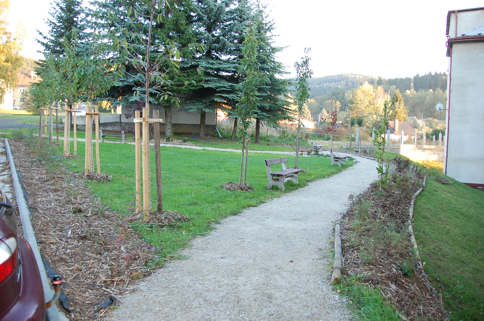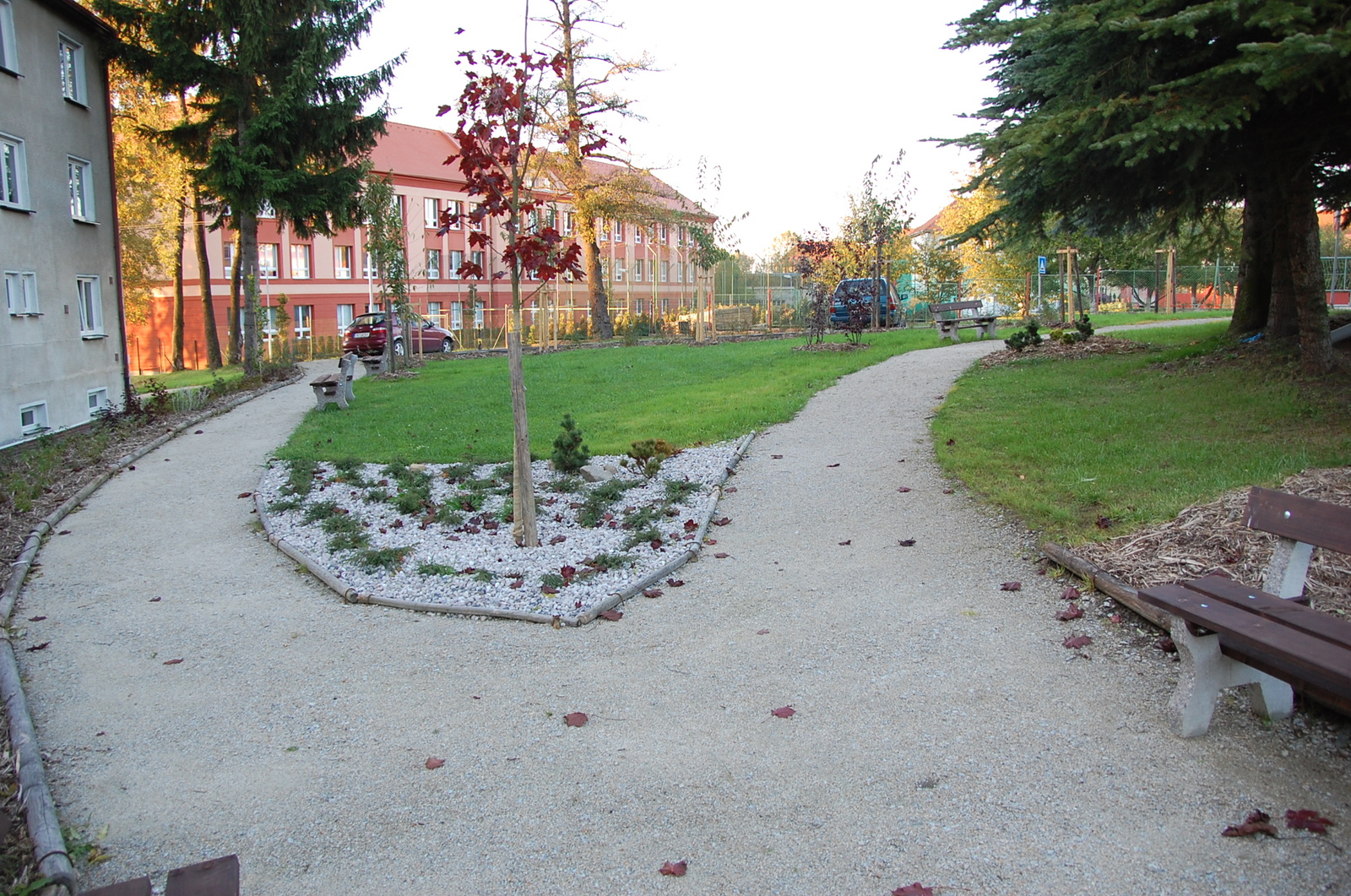 Projekt představoval vybudování parku na parcele o rozloze 687 m2 za budovou Domu s pečovatelskou službou. V parku se vysázelo cca 429 stromků, keřů a jiných okrasných rostlin (javor jasanolistý, javor mleč červenolistý, jilm habrolistý pyramidální, caštanovník setý, třešeň sakura, borovice černá, jalovec obecný, líska turecká, trojpuk skvělý, vajgelie květnatá, tavolník popelavý, tavolník van Houteův a tavolník nízký). Dále bylo v parčíku umístěno 8 ks laviček a dřevěná, zastřešená, z boku krytá pergola.
