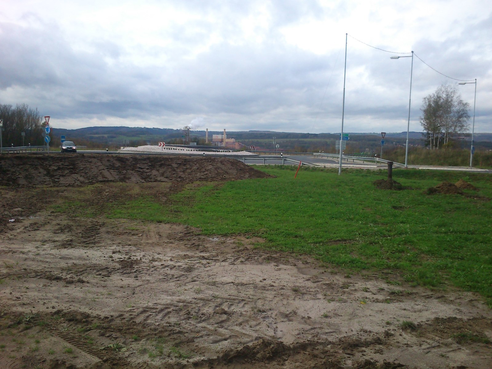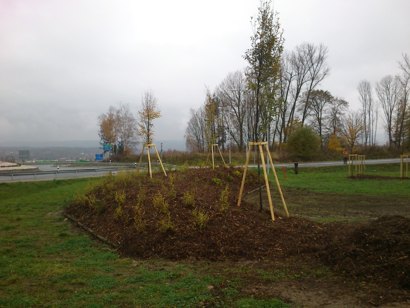 Pokusně byt také vytvořen umělý val, který částečně zastínil kruhovou křižovatku. U tohoto valu bude instalována lavička k odpočinku v klidovém prostředí.