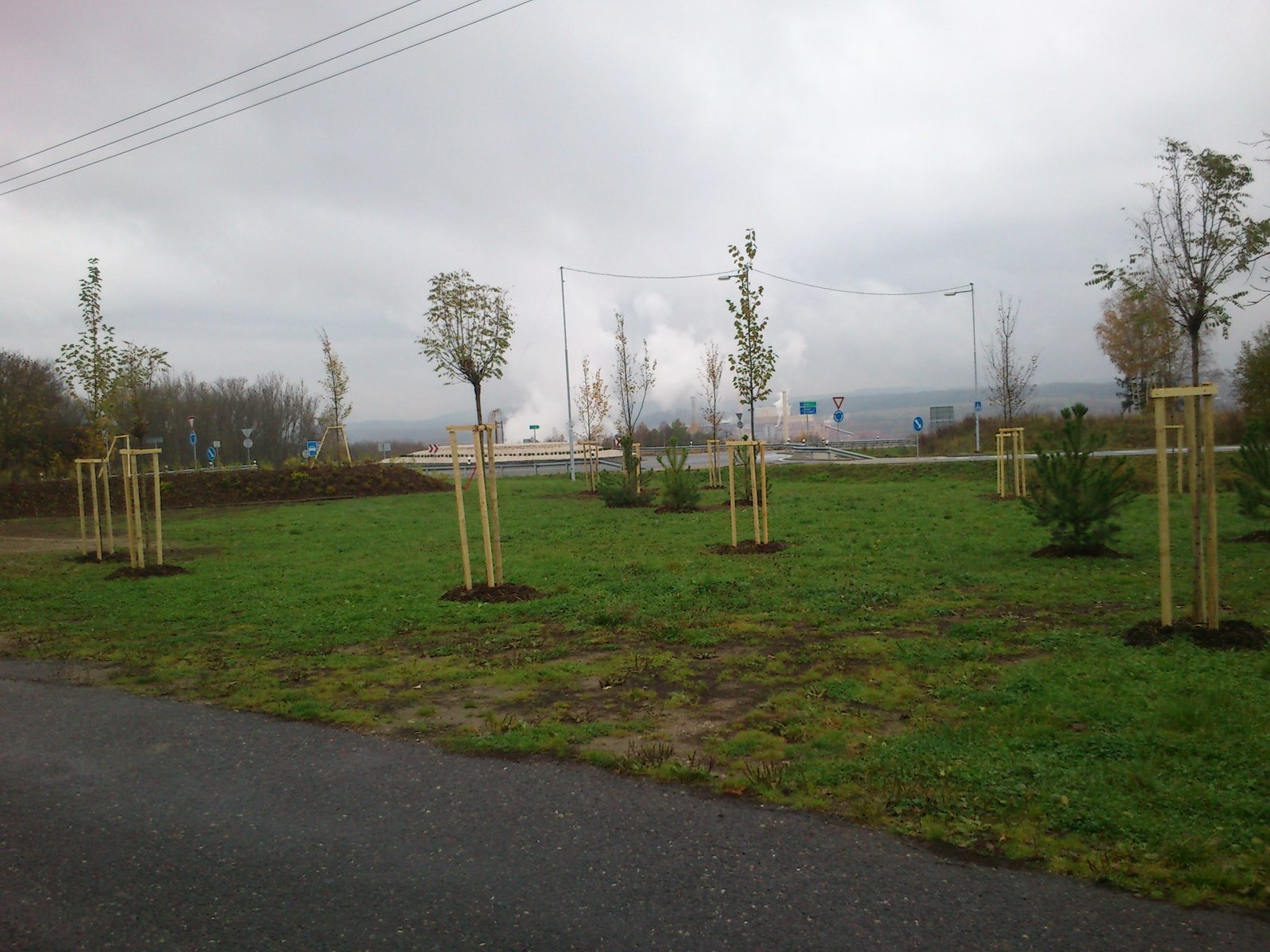 Podle původního návrhu došlo v prostoru u kruhové křižovatky při vjezdu do Březové k výsadbě dřevin a křovin tak, aby byla vytvořena protiprachová a protihluková bariéra mezi rušnou komunikací a zástavbou RD.