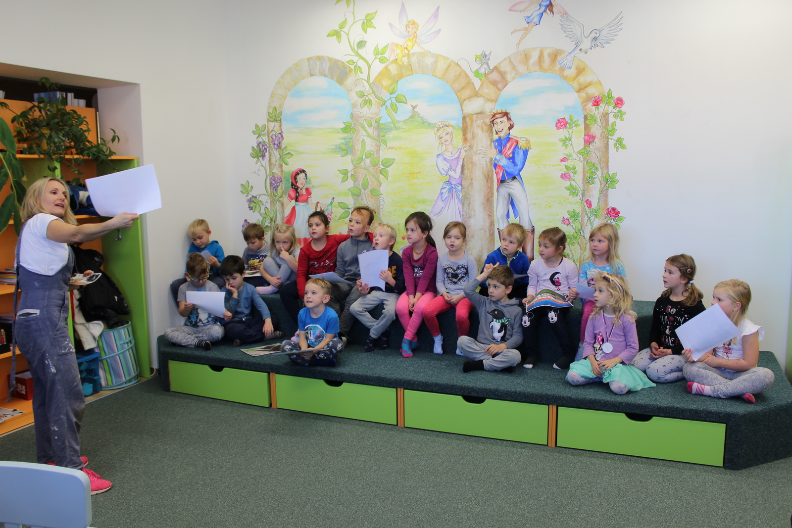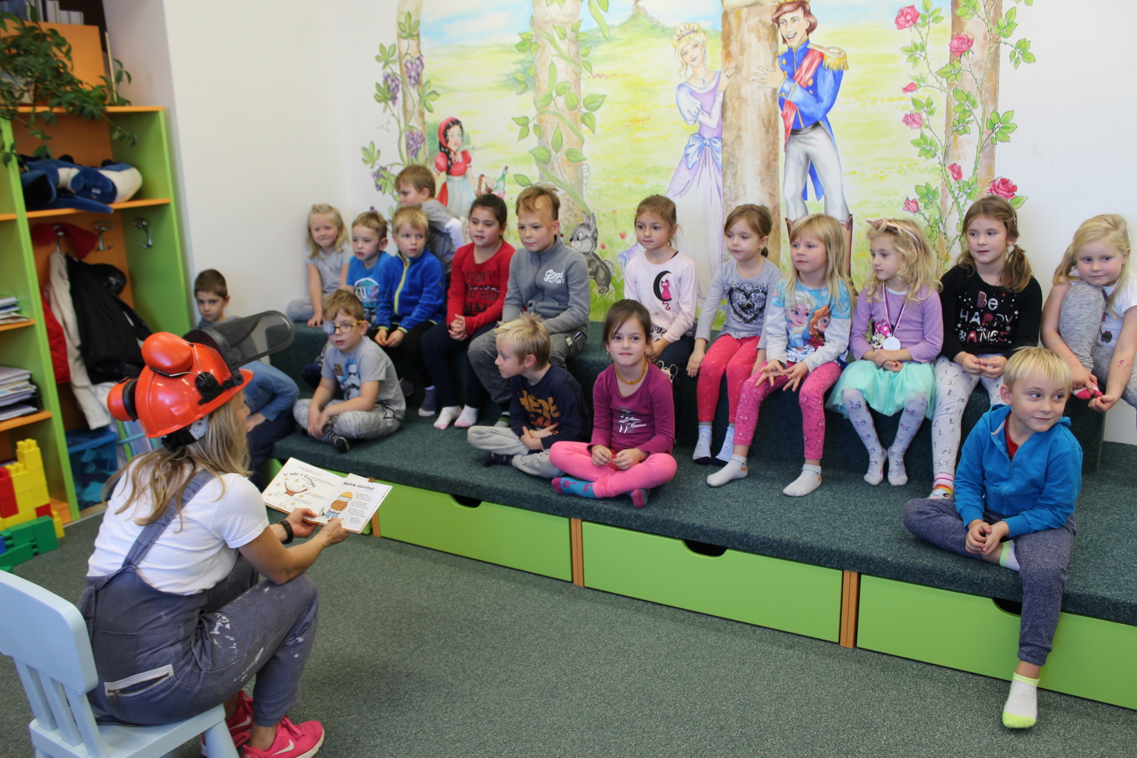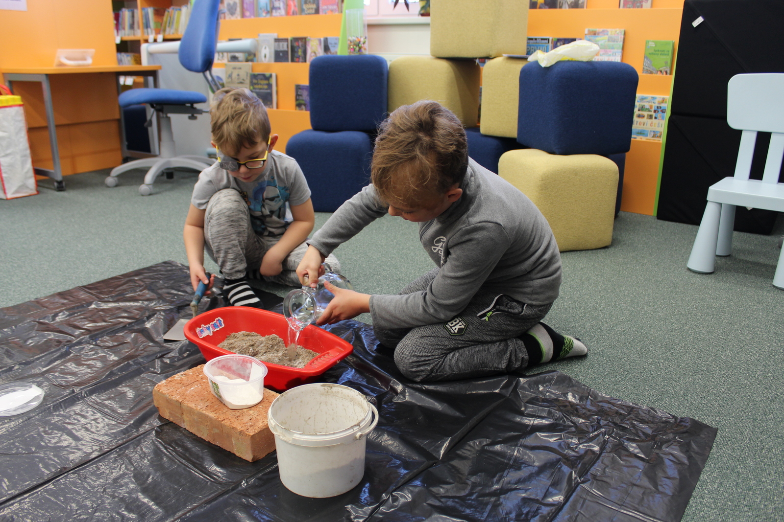 Vyzkoušet si jak se míchá malta nebo třeba staví zeď, přišly do naší knihovny děti z I. mateřské školky v rámci besedy o stavbách. Důležitou postavou našeho programu byl Bořek stavitel a jeho kamarádi.