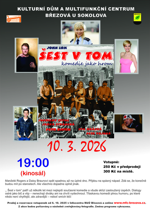 ,, Šest v tom“ patří už několik let mezi nejlepší současné komedie a všude sklízí zasloužený úspěch. Dialogy ostré jako bič a vtip – nenechají diváky ani na chvíli vydechnout. Třaskavou komedii plnou humoru, po které nikdo není chytřejší, ale zdravější – neboť smích léčí, uvádí Agentura Snů v české premiéře.